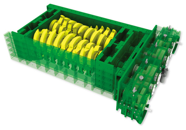 典型的MMD1500系列3齒齒環(huán)篩分破碎機(jī)-配備400KW雙驅(qū)動(dòng)電機(jī)-總重約為160噸。